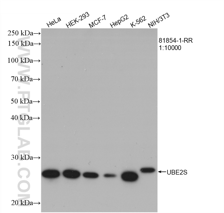 The UBE2S antibody from Proteintech is a rabbit recombinant antibody to a recombinant protein of human UBE2S. This antibody recognizes human, mouse antigen. The UBE2S antibody has been validated for the following applications: WB, IHC, IF/ICC, ELISA analysis.