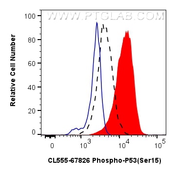 The Phospho-P53 (Ser15) antibody from Proteintech is a mouse monoclonal antibody to a peptide of human Phospho-P53 (Ser15). This antibody recognizes human antigen. The Phospho-P53 (Ser15) antibody has been validated for the following applications: FC (Intra) analysis. This antibody is coraliteR555.