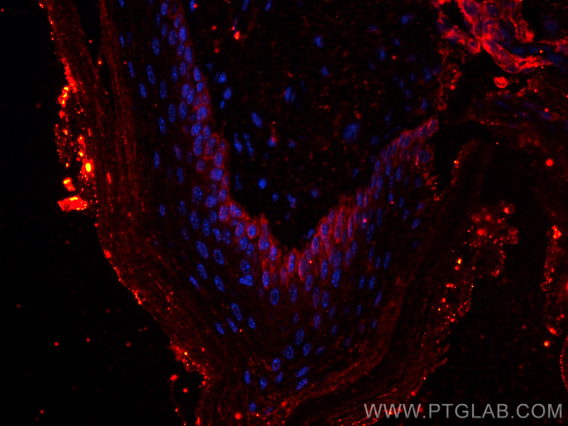 The Cytokeratin 14 antibody from Proteintech is a mouse monoclonal antibody to a recombinant protein of human Cytokeratin 14. This antibody recognizes human, mouse antigen. The Cytokeratin 14 antibody has been validated for the following applications: IF/ICC, IF-P analysis. This antibody is coraliteR594.