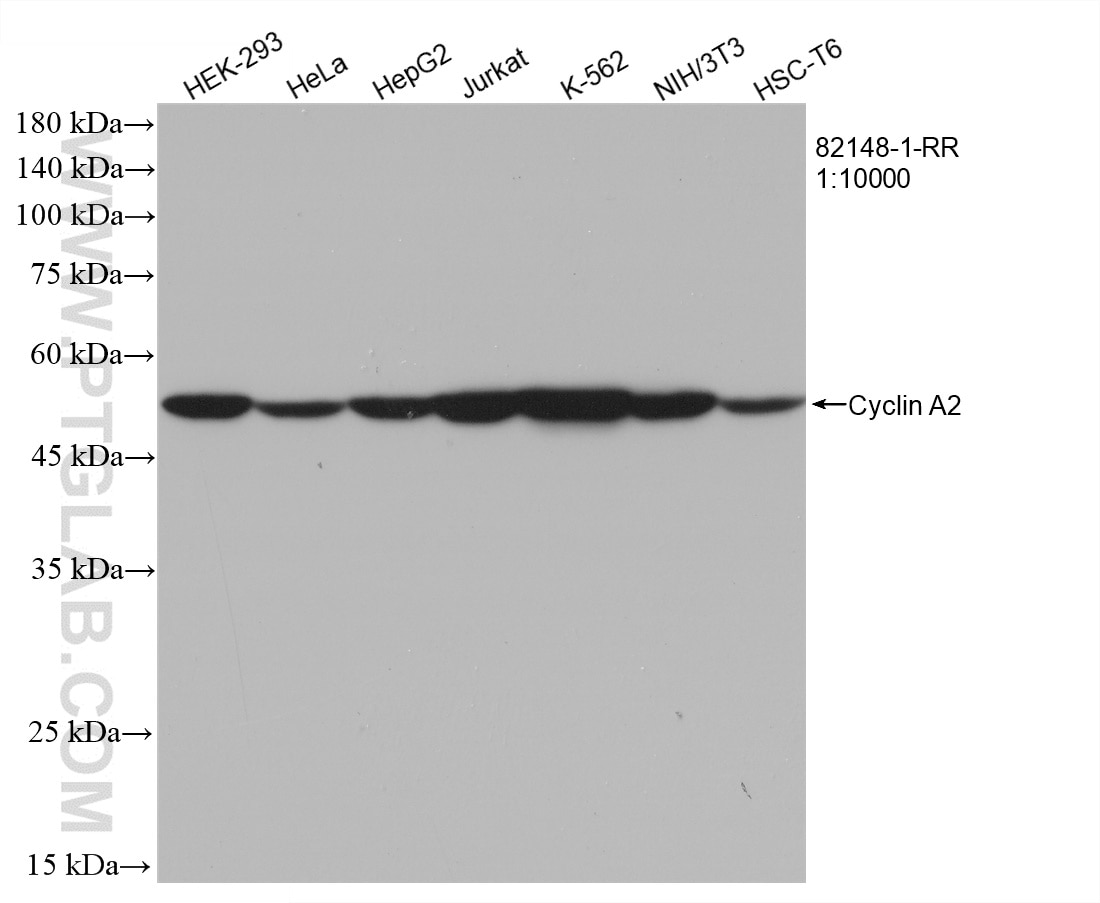 The Cyclin A2 antibody from Proteintech is a rabbit recombinant antibody to a recombinant protein of human Cyclin A2. This antibody recognizes human, mouse, rat antigen. The Cyclin A2 antibody has been validated for the following applications: WB, IHC, IF/ICC, IP, ELISA analysis.