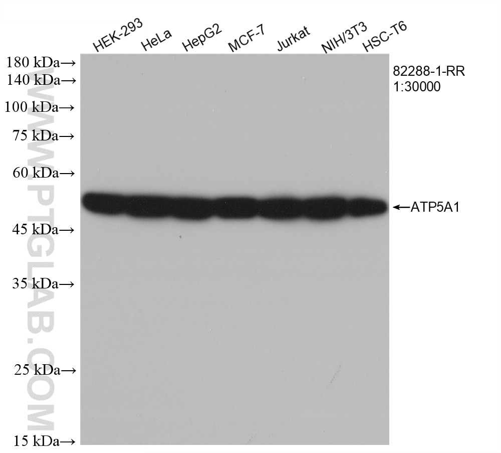 The ATP5A1 antibody from Proteintech is a rabbit recombinant antibody to a recombinant protein of human ATP5A1. This antibody recognizes human, mouse, rat antigen. The ATP5A1 antibody has been validated for the following applications: WB, IHC, IF/ICC, FC (Intra), ELISA analysis.