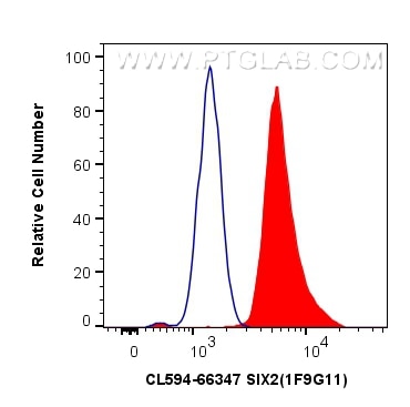 The SIX2 antibody from Proteintech is a mouse monoclonal antibody to a recombinant protein of human SIX2. This antibody recognizes human, mouse, rat, pig, canine antigen. The SIX2 antibody has been validated for the following applications: IF/ICC, FC (Intra) analysis. This antibody is coraliteR594.