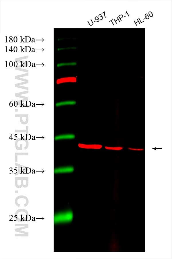 The PLEK antibody from Proteintech is a mouse monoclonal antibody to a recombinant protein of human PLEK. This antibody recognizes human antigen. The PLEK antibody has been validated for the following applications: WB, FC (Intra) analysis. This antibody is coraliteR594.