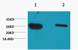 Western blot analysis of GFP transfected Hela, diluted at1) 1:5000 2) 1:10000