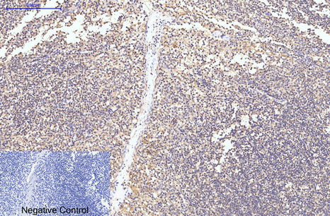 Immunohistochemical analysis of paraffin-embedded Human-Tonsil tissue. 1,Caspase-8 Monoclonal Antibody(2G12) was diluted at 1:200(4°C,overnight). 2, Sodium citrate pH 6.0 was used for antibody retrieval(>98°C,20min). 3,Secondary antibody was diluted at 1:200(room tempeRature, 30min). Negative control was used by secondary antibody only.