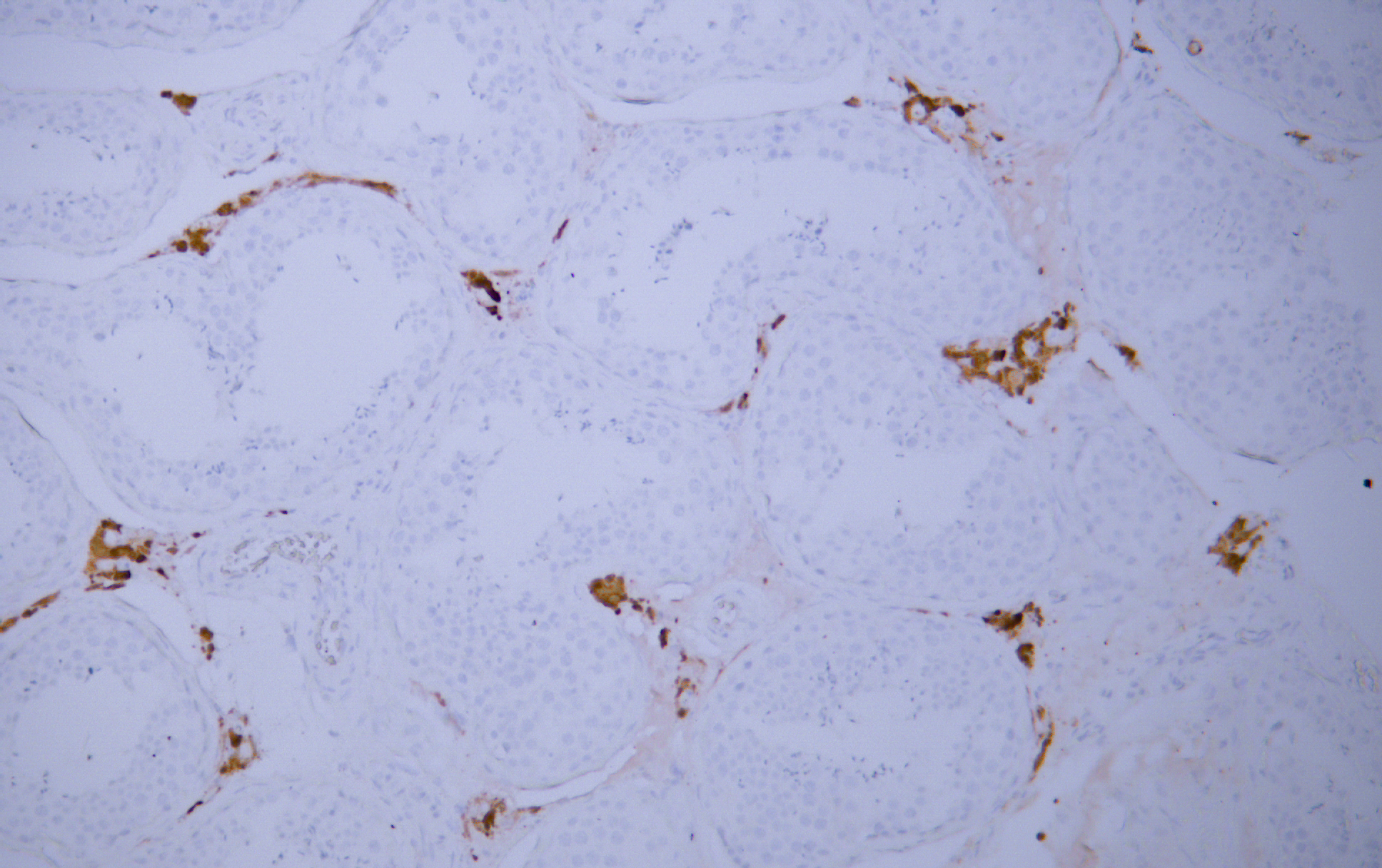 Human testis tissue was stained with anti-Calretinin(ABT-Calret 1) antibody.