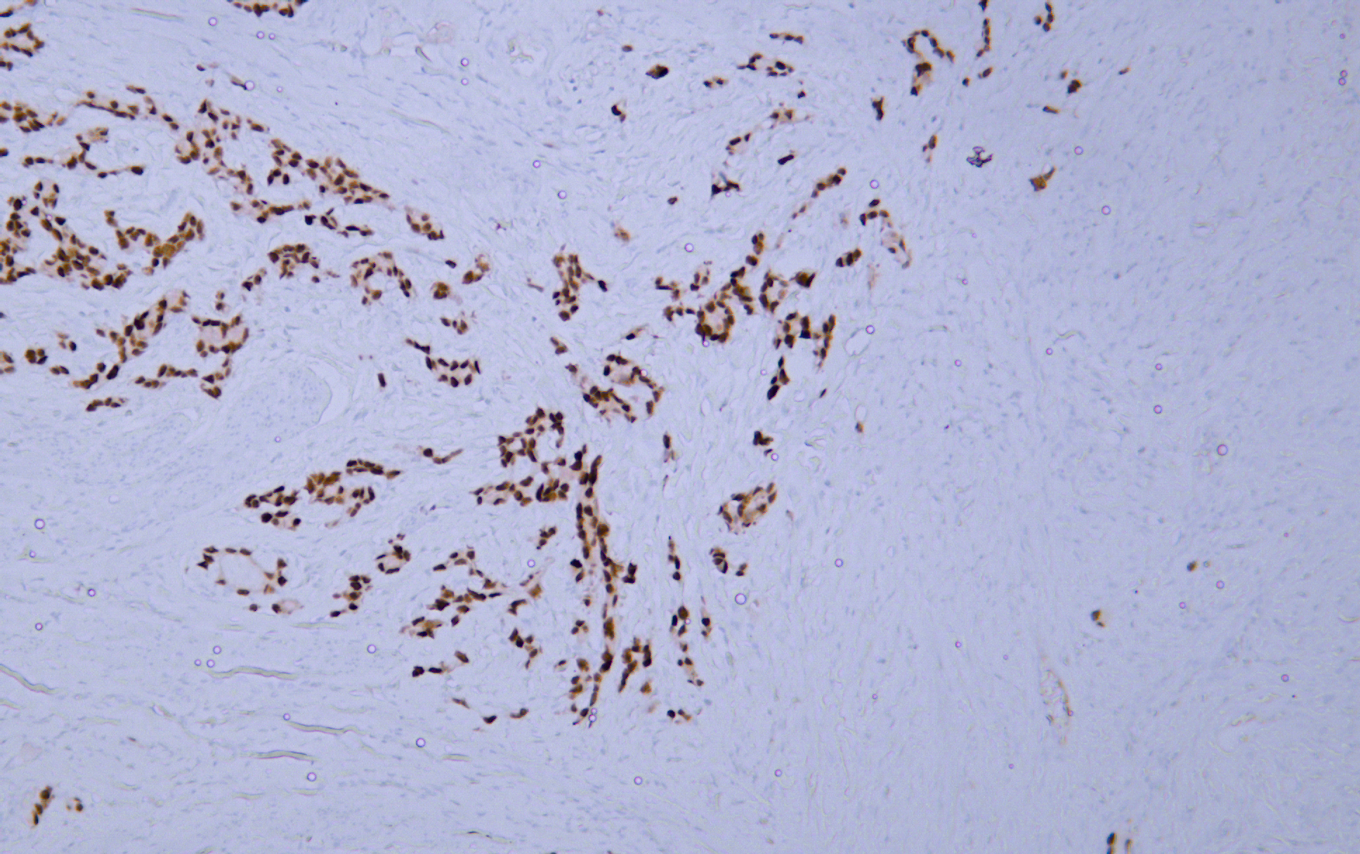 Human gastric adenocarcinoma tissue was stained with Anti-SOX9 (ABT-SOX9) Antibody