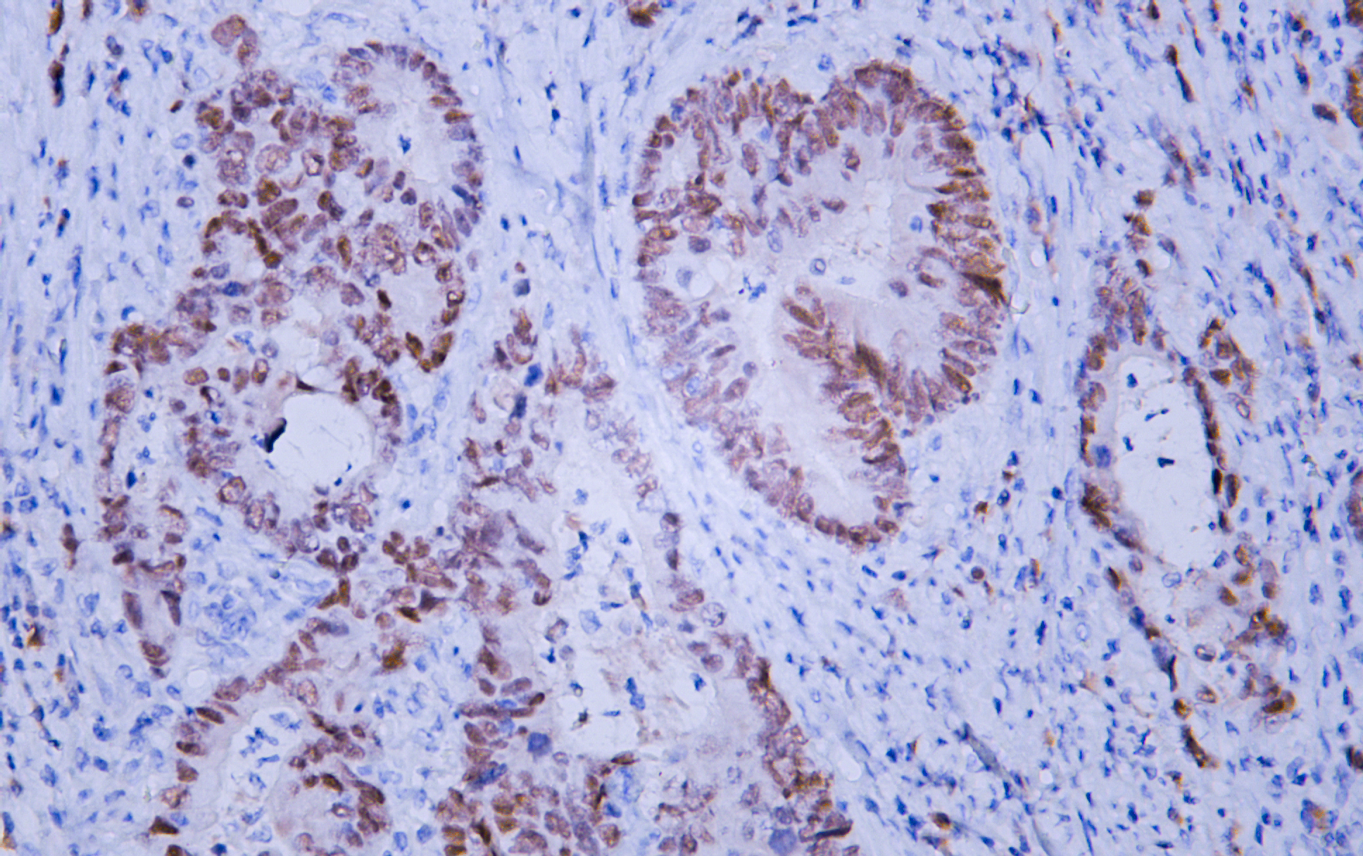 Human rectal carcinoma tissue was stained with Anti-SOX9 (ABT-SOX9) Antibody