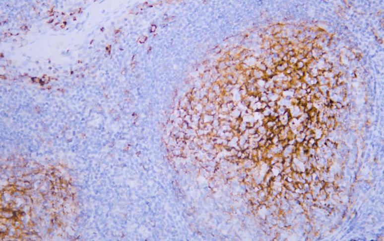 Human tonsil tissue was stained with anti-CD14(ABT021) antibody.