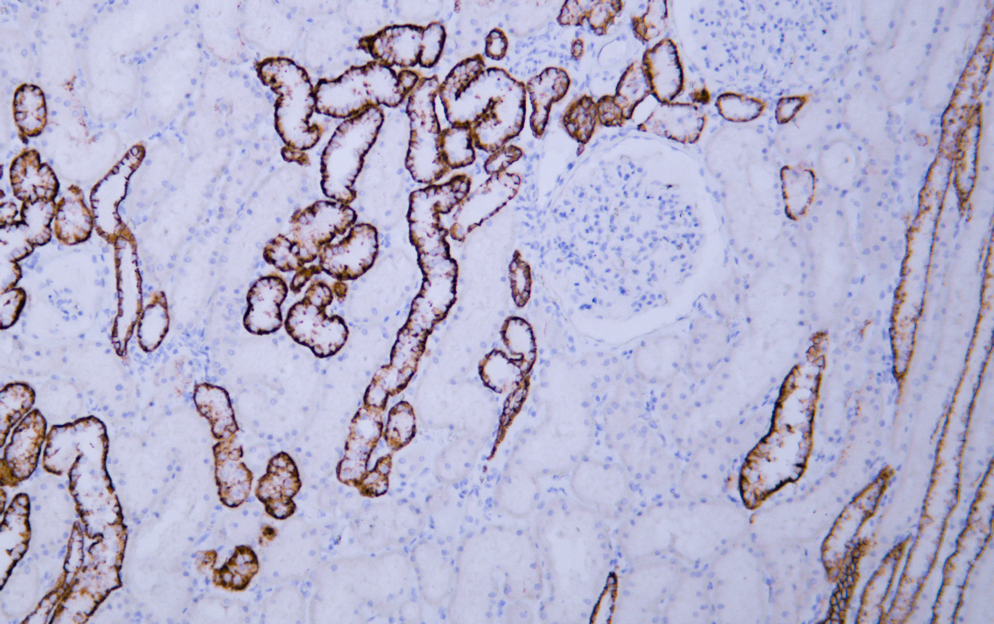 Human kidney tissue was stained with Anti-Claudin 7 (ABT441) Antibody