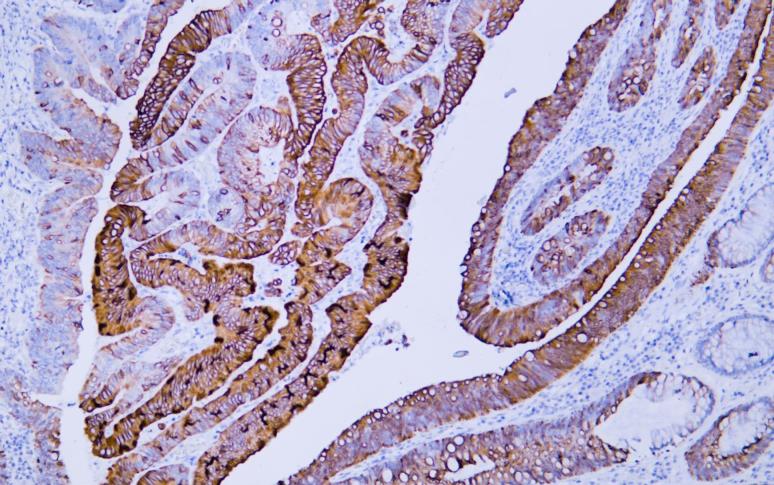 Human colon carcinoma tissue was stained with Anti-Cytokeratin 20 (ABT044) Antibody