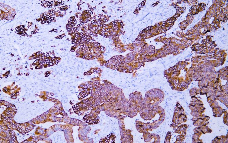 Human rectal carcinoma tissue was stained with Anti-Cytokeratin 20 (ABT044) Antibody