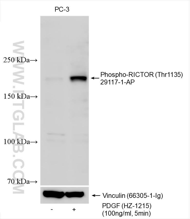 The Phospho-RICTOR (Thr1135) antibody from Proteintech is a rabbit polyclonal antibody to a peptide of human Phospho-RICTOR (Thr1135). This antibody recognizes human antigen. The Phospho-RICTOR (Thr1135) antibody has been validated for the following applications: WB, ELISA analysis.