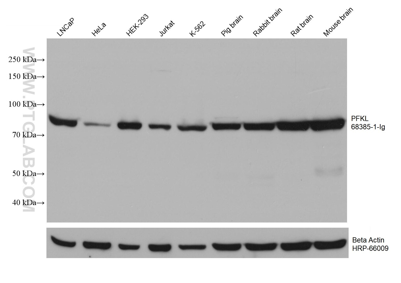 The PFKL antibody from Proteintech is a mouse monoclonal antibody to a recombinant protein of human PFKL. This antibody recognizes human, mouse, rat, rabbit, pig antigen. The PFKL antibody has been validated for the following applications: WB, IHC, IF/ICC, FC (Intra), ELISA analysis.