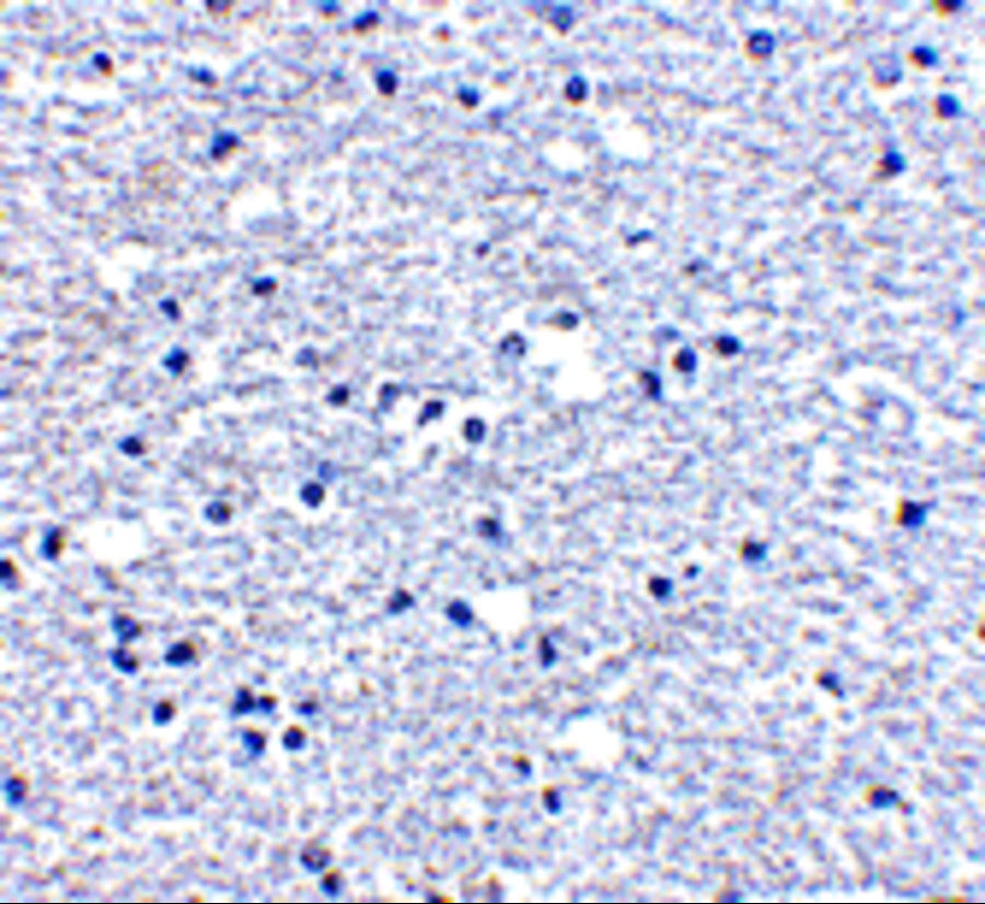 Immunohistochemistry of PD-1 in human brain tissue with PD-1 antibody at 5 μg/mL.