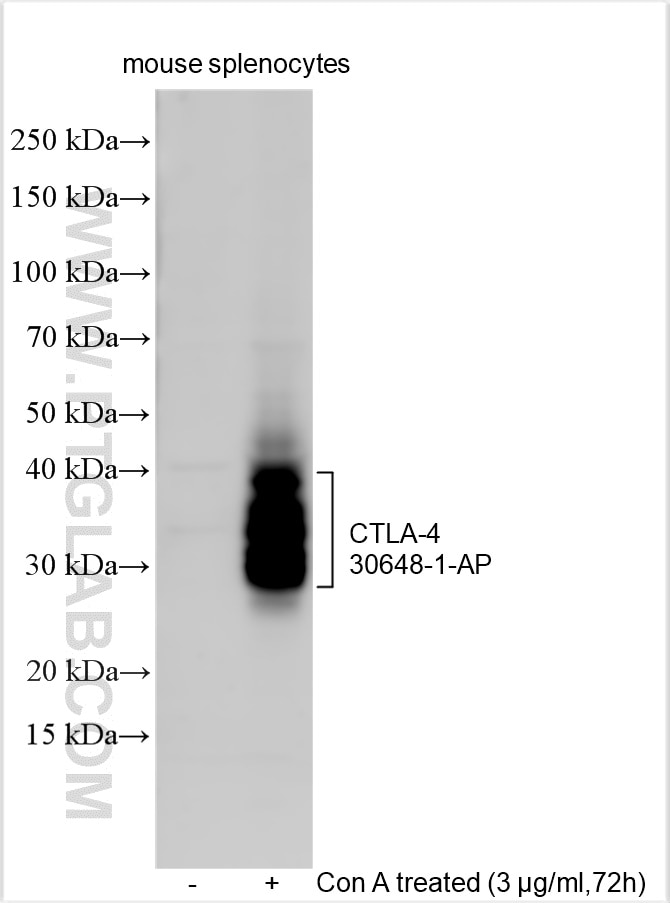 The CTLA-4/CD152 antibody from Proteintech is a rabbit polyclonal antibody to a recombinant protein of mouse CTLA-4/CD152. This antibody recognizes mouse antigen. The CTLA-4/CD152 antibody has been validated for the following applications: WB, IF-P, ELISA analysis.