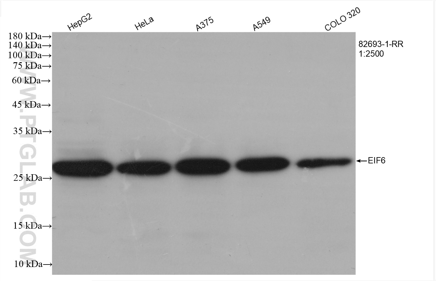 The EIF6 antibody from Proteintech is a rabbit recombinant antibody to a recombinant protein of human EIF6. This antibody recognizes human antigen. The EIF6 antibody has been validated for the following applications: WB, ELISA analysis.