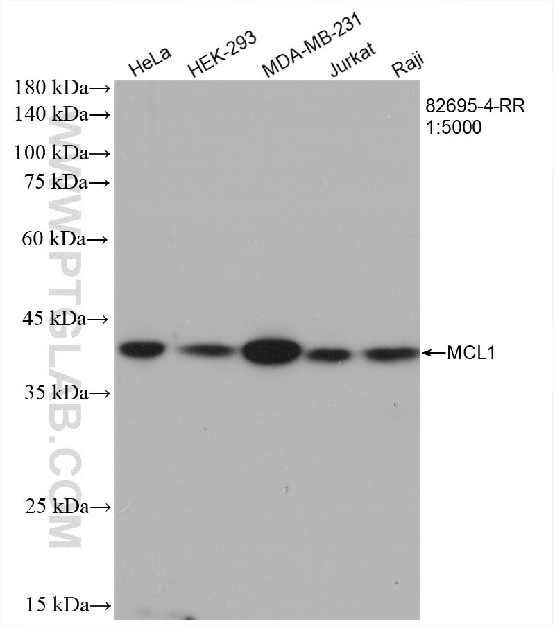 The MCL1 antibody from Proteintech is a rabbit recombinant antibody to a recombinant protein of human MCL1. This antibody recognizes human antigen. The MCL1 antibody has been validated for the following applications: WB, IHC, IF/ICC, FC (Intra), ELISA analysis.