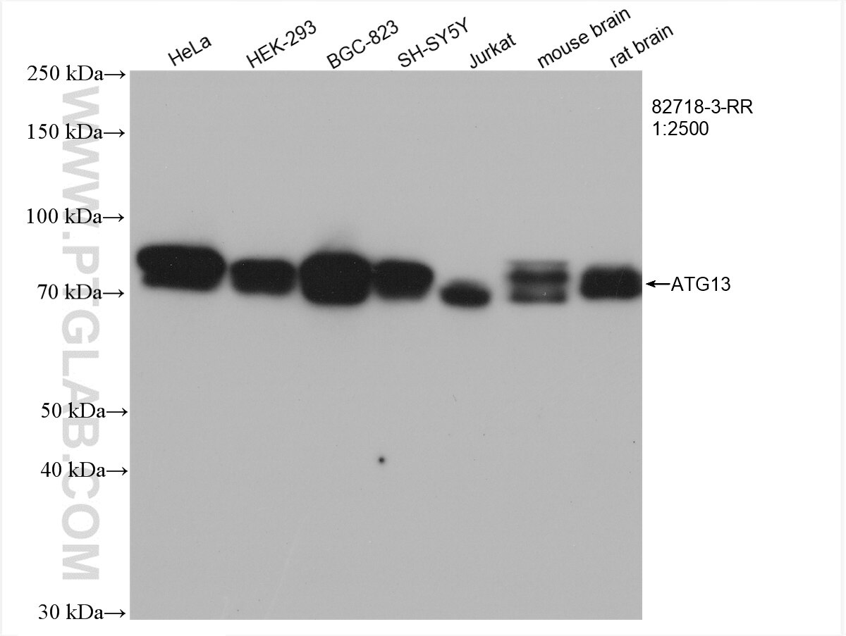The ATG13 antibody from Proteintech is a rabbit recombinant antibody to a recombinant protein of human ATG13. This antibody recognizes human, mouse, rat antigen. The ATG13 antibody has been validated for the following applications: WB, IHC, ELISA analysis.
