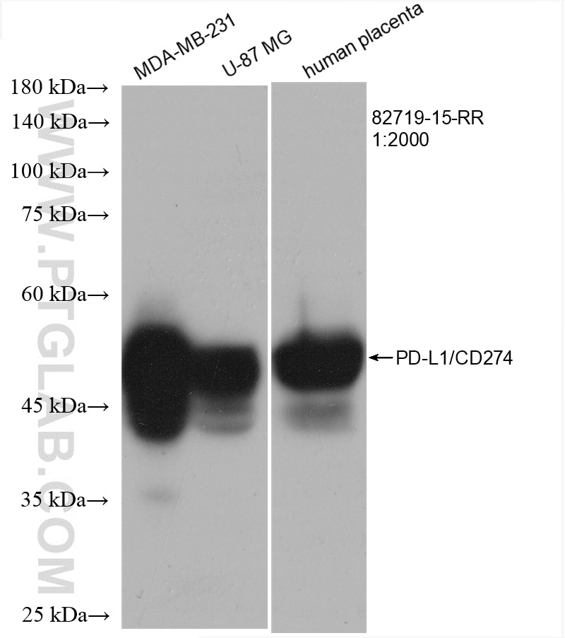 The PD-L1/CD274 antibody from Proteintech is a rabbit recombinant antibody to a recombinant protein of human PD-L1/CD274. This antibody recognizes human antigen. The PD-L1/CD274 antibody has been validated for the following applications: WB, IHC, IF-P, ELISA analysis.