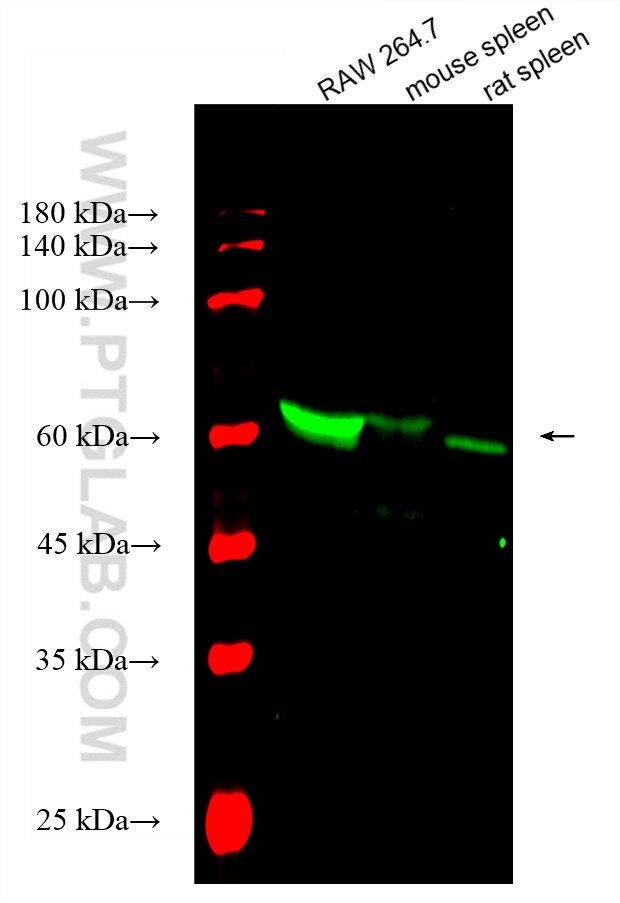 The NOX2 antibody from Proteintech is a rabbit polyclonal antibody to a recombinant protein of human NOX2. This antibody recognizes human, mouse, rat antigen. The NOX2 antibody has been validated for the following applications: WB, FC (Intra) analysis. This antibody is coraliteR plus 488.