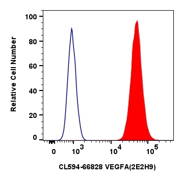 The VEGFA antibody from Proteintech is a mouse monoclonal antibody to a recombinant protein of human VEGFA. This antibody recognizes human antigen. The VEGFA antibody has been validated for the following applications: IF/ICC, FC (Intra) analysis. This antibody is coraliteR594.