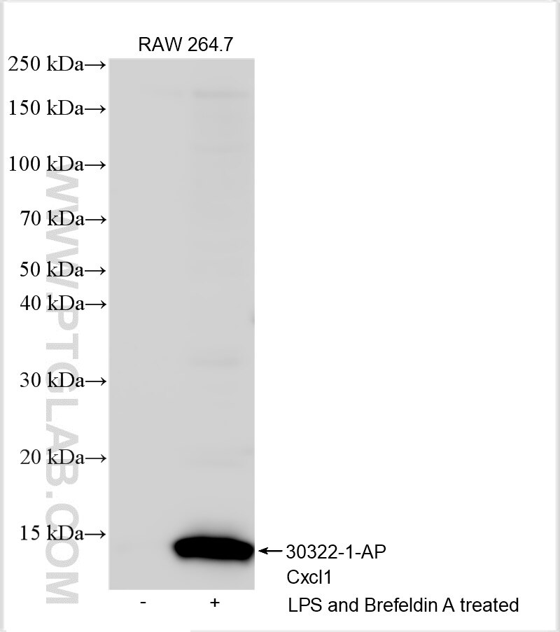 The CXCL1 antibody from Proteintech is a rabbit polyclonal antibody to a recombinant protein of mouse CXCL1. This antibody recognizes mouse antigen. The CXCL1 antibody has been validated for the following applications: WB, ELISA analysis.