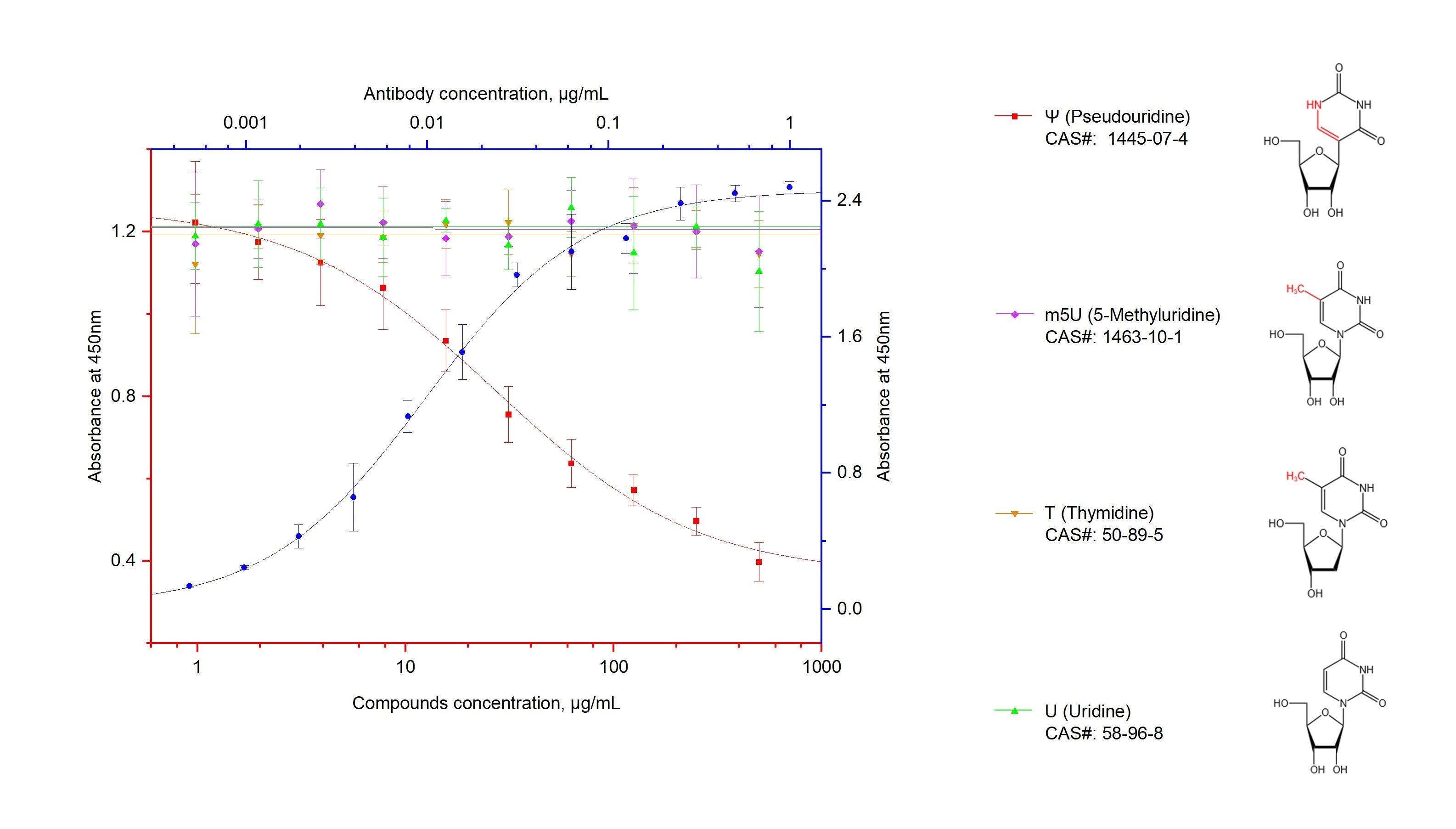 The Pseudouridine antibody from Proteintech is a mouse monoclonal antibody to a ptg. This antibody recognizes chemical compound antigen. The Pseudouridine antibody has been validated for the following applications: Dot Blot, ELISA analysis.