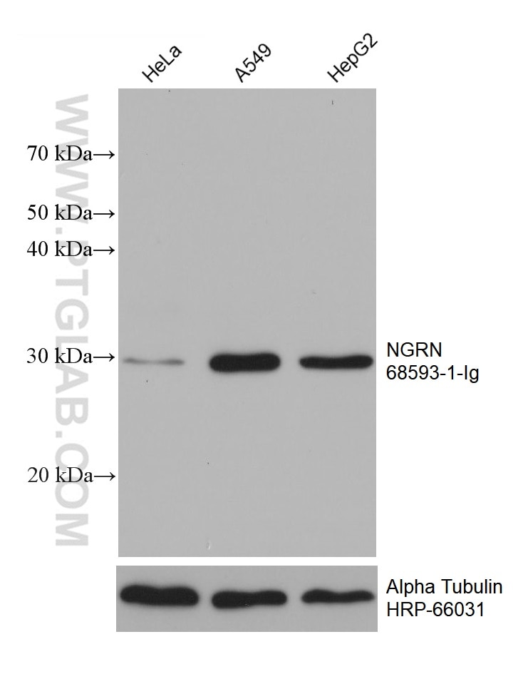 The NGRN antibody from Proteintech is a mouse monoclonal antibody to a recombinant protein of human NGRN. This antibody recognizes human antigen. The NGRN antibody has been validated for the following applications: WB, ELISA analysis.