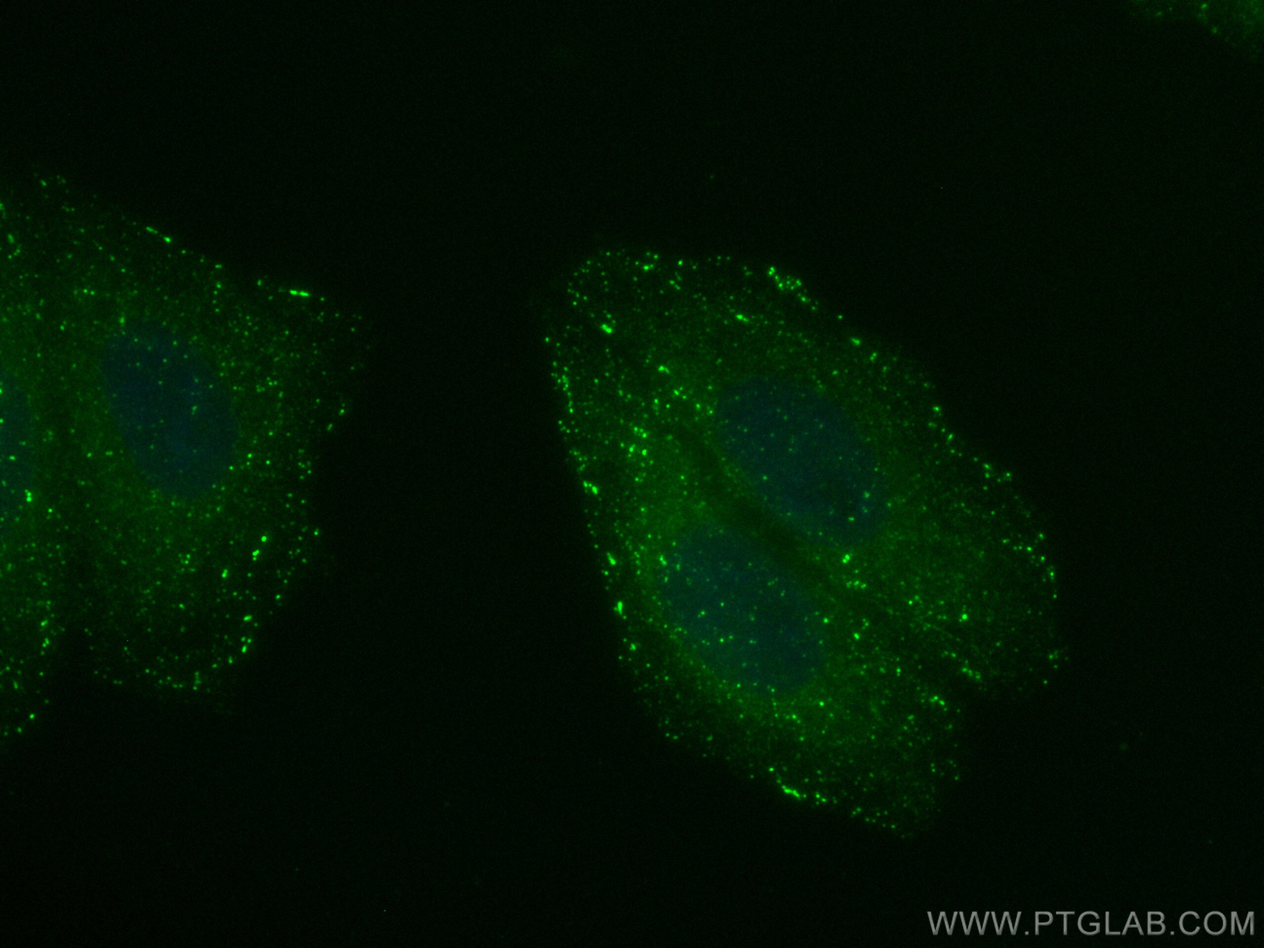 The APPL1 antibody from Proteintech is a rabbit polyclonal antibody to a recombinant protein of human APPL1. This antibody recognizes human, mouse, rat antigen. The APPL1 antibody has been validated for the following applications: IF/ICC analysis. This antibody is coraliteR plus 488.