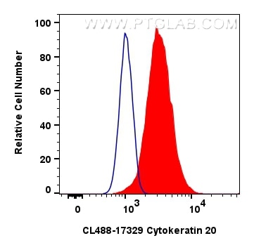 The Cytokeratin 20 antibody from Proteintech is a rabbit polyclonal antibody to a recombinant protein of human Cytokeratin 20. This antibody recognizes human, mouse, rat, rabbit antigen. The Cytokeratin 20 antibody has been validated for the following applications: IF/ICC, FC (Intra) analysis. This antibody is coraliteR plus 488.