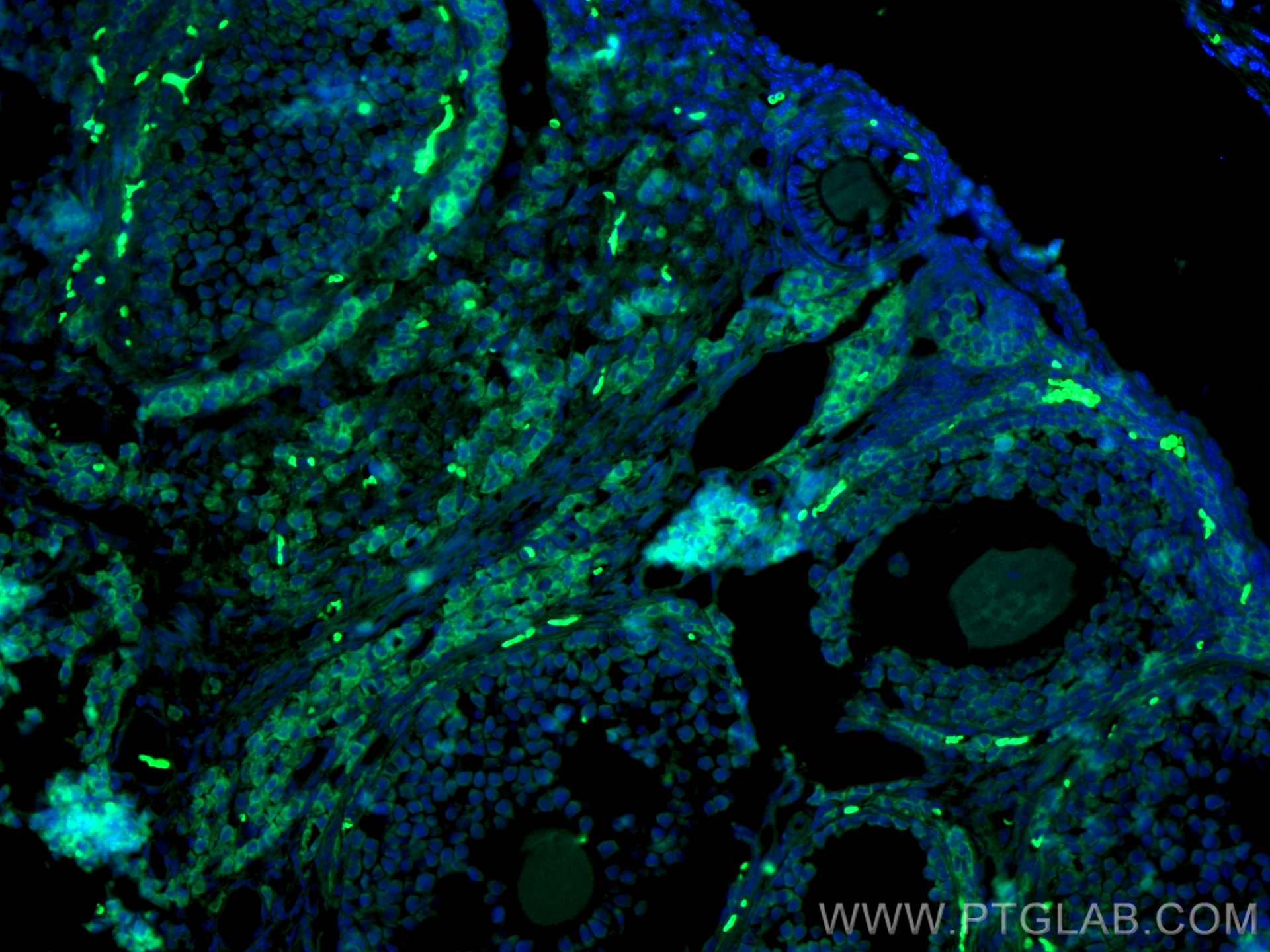 The AMH antibody from Proteintech is a rabbit polyclonal antibody to a recombinant protein of human AMH. This antibody recognizes human, rat, mouse antigen. The AMH antibody has been validated for the following applications: IF-P analysis. This antibody is coraliteR plus 488.