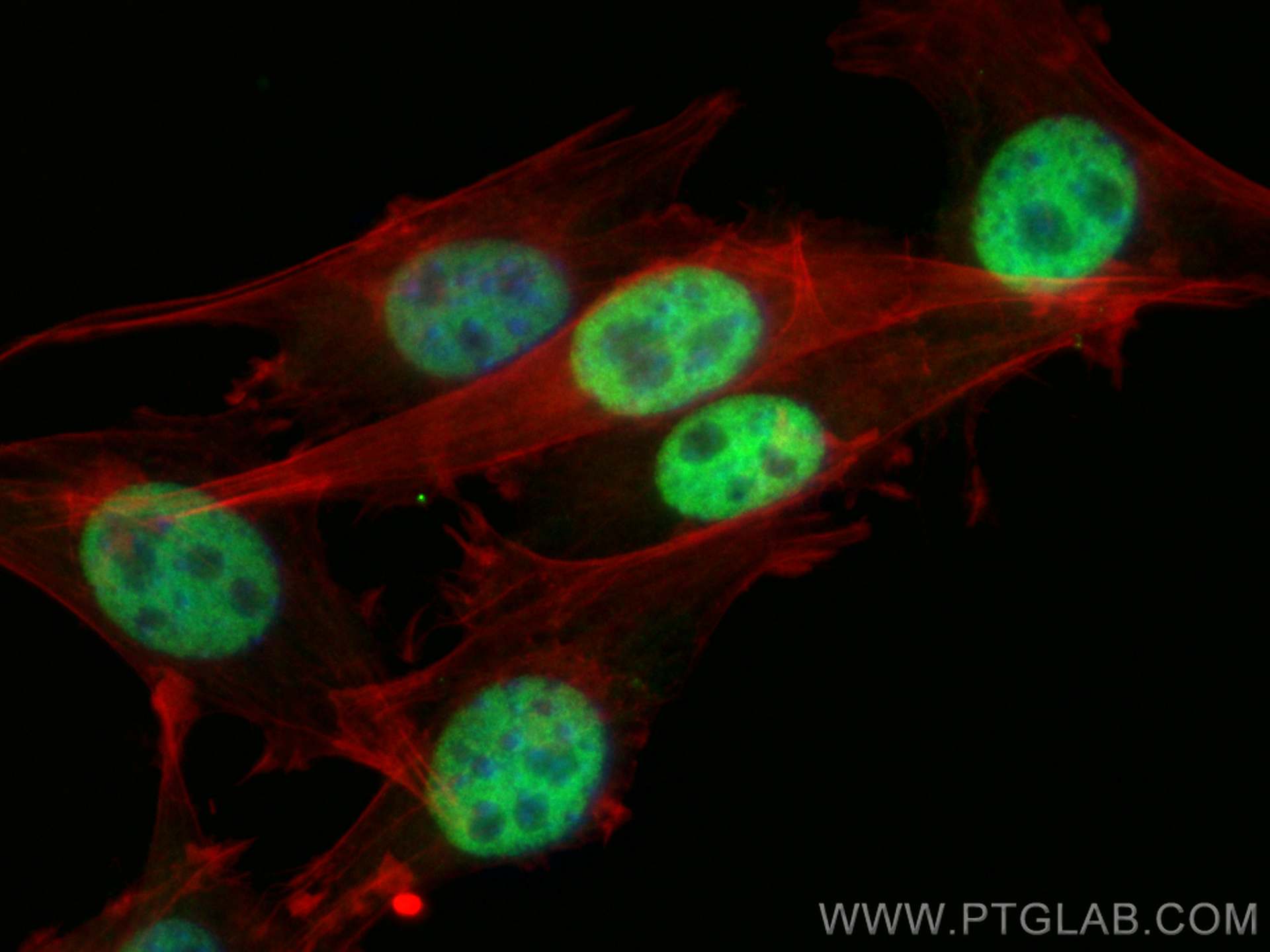 The JUN antibody from Proteintech is a rabbit polyclonal antibody to a recombinant protein of human JUN. This antibody recognizes human, hamster, mouse antigen. The JUN antibody has been validated for the following applications: IF/ICC analysis. This antibody is coraliteR plus 488.