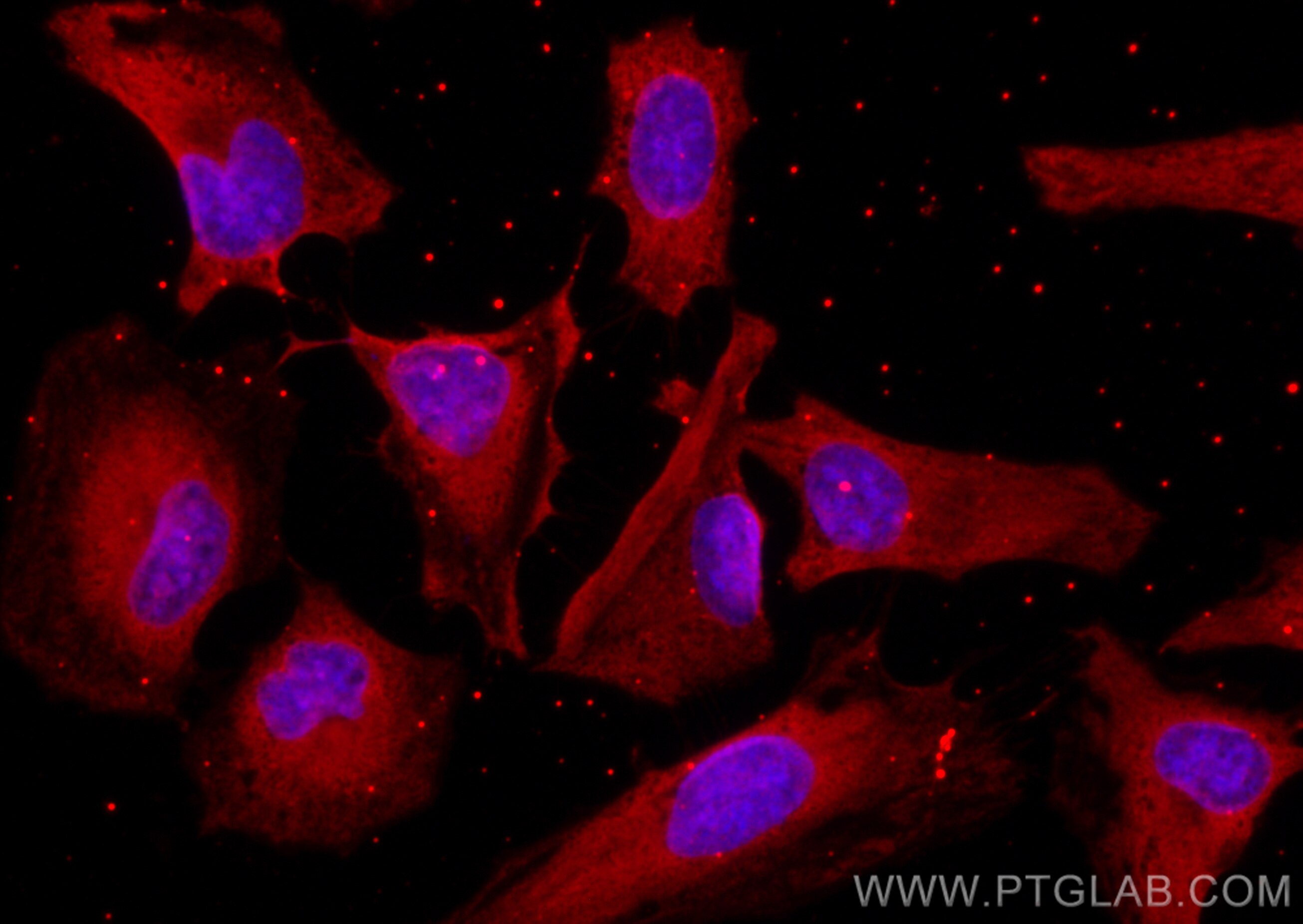 The DNM2 antibody from Proteintech is a mouse monoclonal antibody to a recombinant protein of human DNM2. This antibody recognizes human, mouse, rat, pig, rabbit antigen. The DNM2 antibody has been validated for the following applications: IF/ICC analysis. This antibody is coraliteR594.