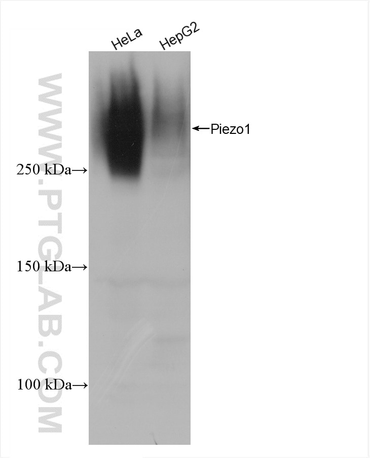 The Piezo1 (extracellular domain) antibody from Proteintech is a rabbit recombinant antibody to a recombinant protein of human Piezo1 (extracellular domain). This antibody recognizes human, rat antigen. The Piezo1 (extracellular domain) antibody has been validated for the following applications: WB, IHC, IF/ICC, ELISA analysis.