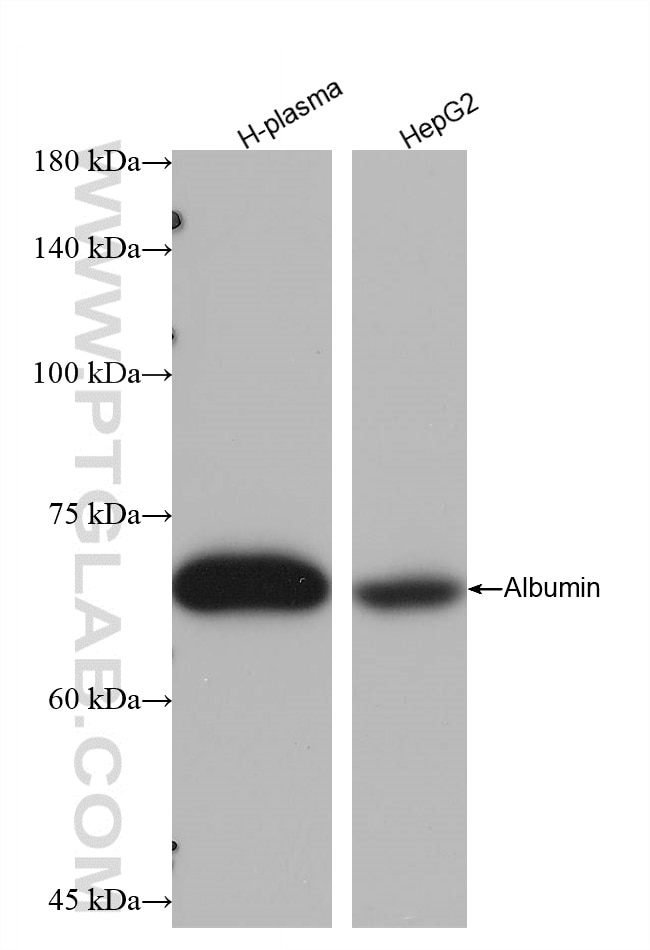 The Albumin antibody from Proteintech is a rabbit recombinant antibody to a recombinant protein of human Albumin. This antibody recognizes human, mouse, rat antigen. The Albumin antibody has been validated for the following applications: WB, IHC, IF/ICC, IF-P, ELISA analysis.