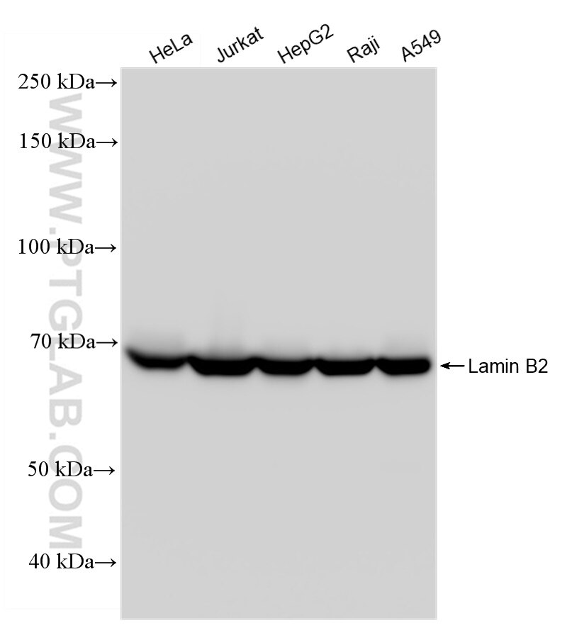 The Lamin B2 antibody from Proteintech is a rabbit recombinant antibody to a recombinant protein of human Lamin B2. This antibody recognizes human antigen. The Lamin B2 antibody has been validated for the following applications: WB, IF/ICC, FC (Intra), ELISA analysis.