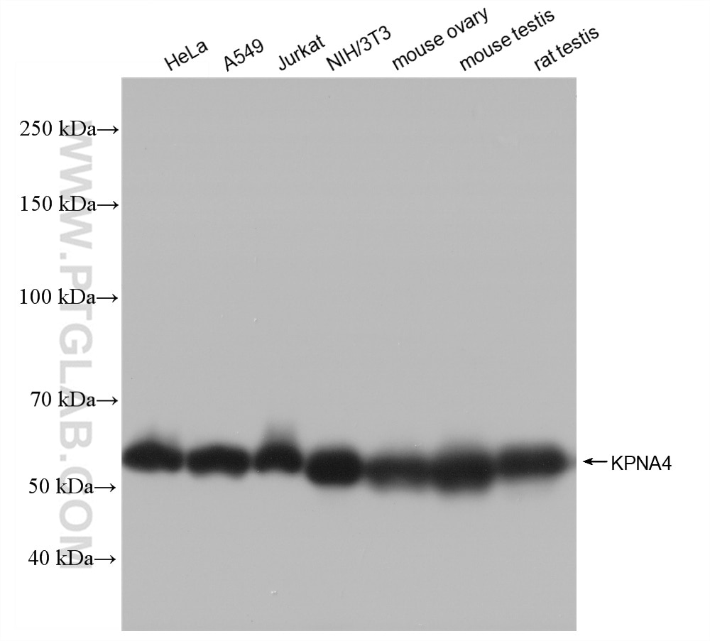 The KPNA4 antibody from Proteintech is a rabbit recombinant antibody to a recombinant protein of human KPNA4. This antibody recognizes human, mouse, rat antigen. The KPNA4 antibody has been validated for the following applications: WB, IHC, IF/ICC, FC (Intra), ELISA analysis.