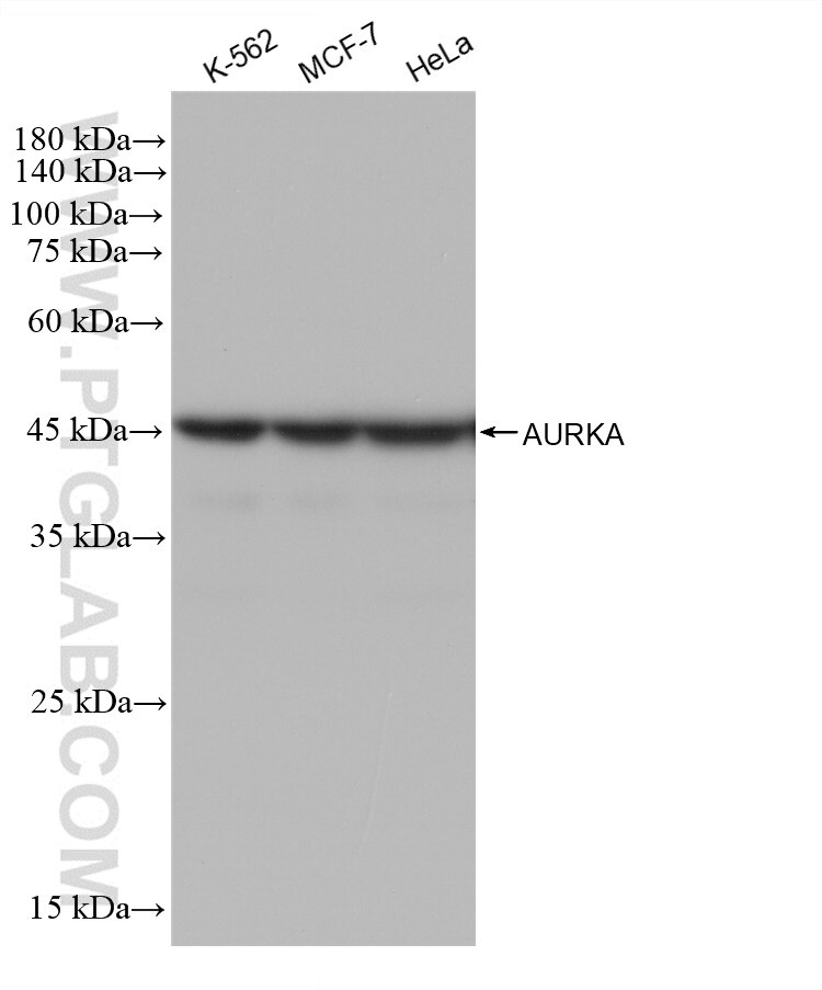The AURKA antibody from Proteintech is a rabbit recombinant antibody to a recombinant protein of human AURKA. This antibody recognizes human antigen. The AURKA antibody has been validated for the following applications: WB, IF/ICC, ELISA analysis.