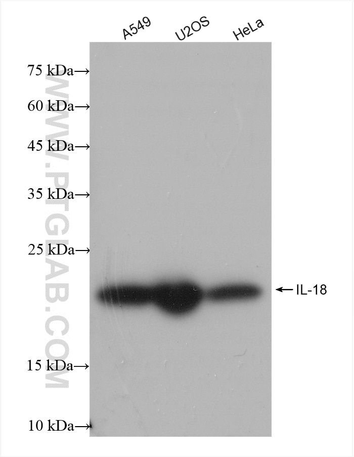 The IL-18 antibody from Proteintech is a rabbit recombinant antibody to a recombinant protein of human IL-18. This antibody recognizes human antigen. The IL-18 antibody has been validated for the following applications: WB, IHC, IF/ICC, FC (Intra), ELISA analysis.