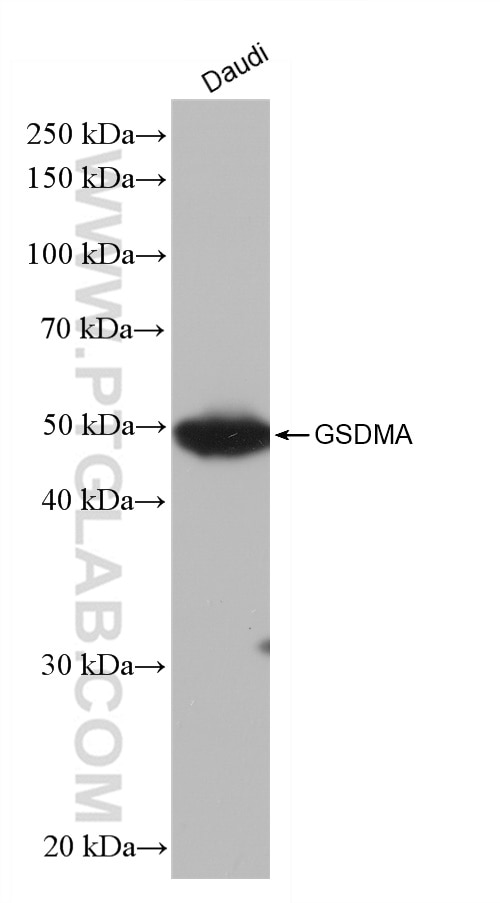 The GSDMA antibody from Proteintech is a rabbit recombinant antibody to a recombinant protein of human GSDMA. This antibody recognizes human antigen. The GSDMA antibody has been validated for the following applications: WB, ELISA analysis.