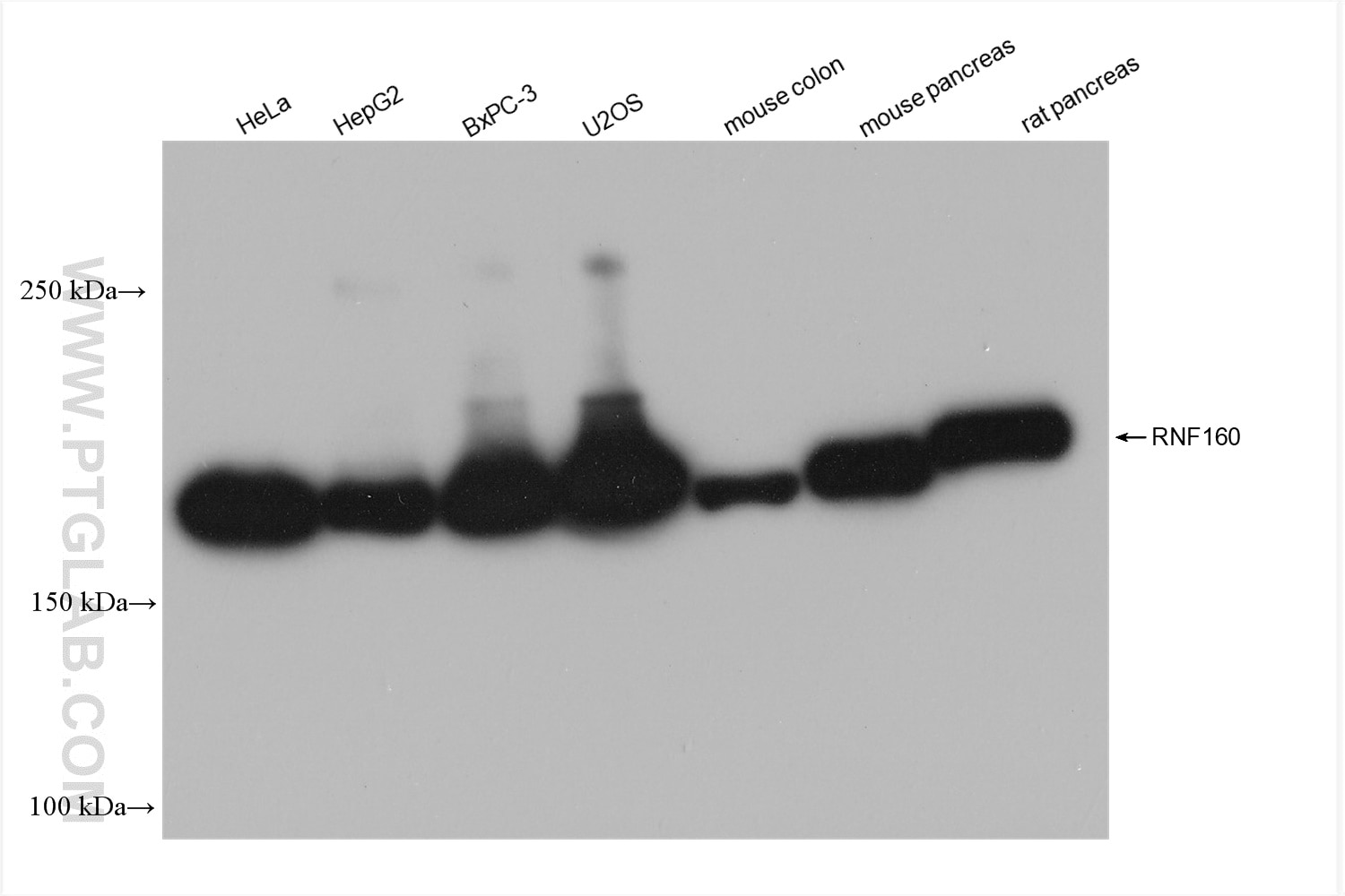 The RNF160 antibody from Proteintech is a rabbit recombinant antibody to a recombinant protein of human RNF160. This antibody recognizes human, mouse, rat antigen. The RNF160 antibody has been validated for the following applications: WB, IHC, FC (Intra), ELISA analysis.