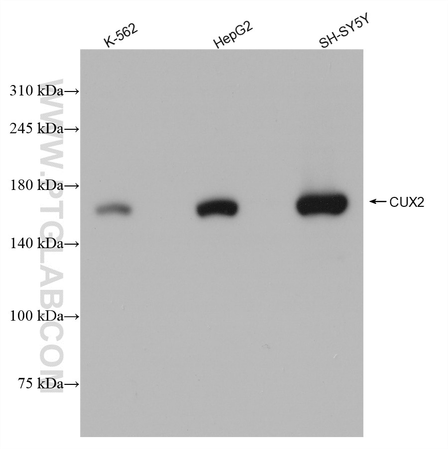 The CUX2 antibody from Proteintech is a rabbit recombinant antibody to a recombinant protein of human CUX2. This antibody recognizes human antigen. The CUX2 antibody has been validated for the following applications: WB, IF/ICC, ELISA analysis.