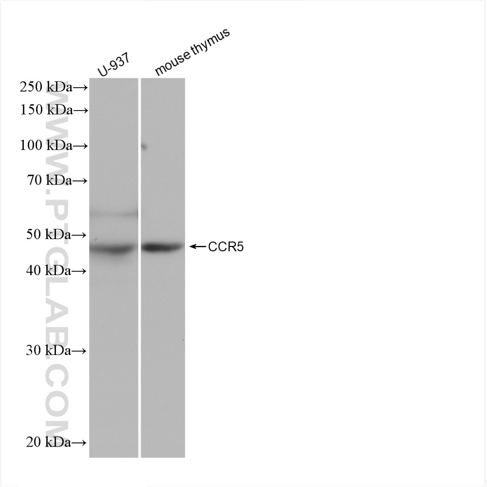 The CCR5 antibody from Proteintech is a rabbit recombinant antibody to a recombinant protein of human CCR5. This antibody recognizes human, mouse antigen. The CCR5 antibody has been validated for the following applications: WB, ELISA analysis.