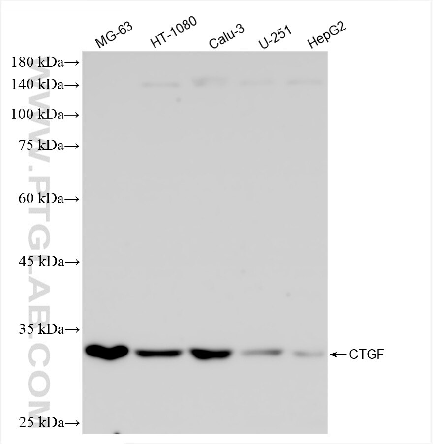 The CTGF antibody from Proteintech is a rabbit recombinant antibody to a peptide of human CTGF. This antibody recognizes human antigen. The CTGF antibody has been validated for the following applications: WB, ELISA analysis.