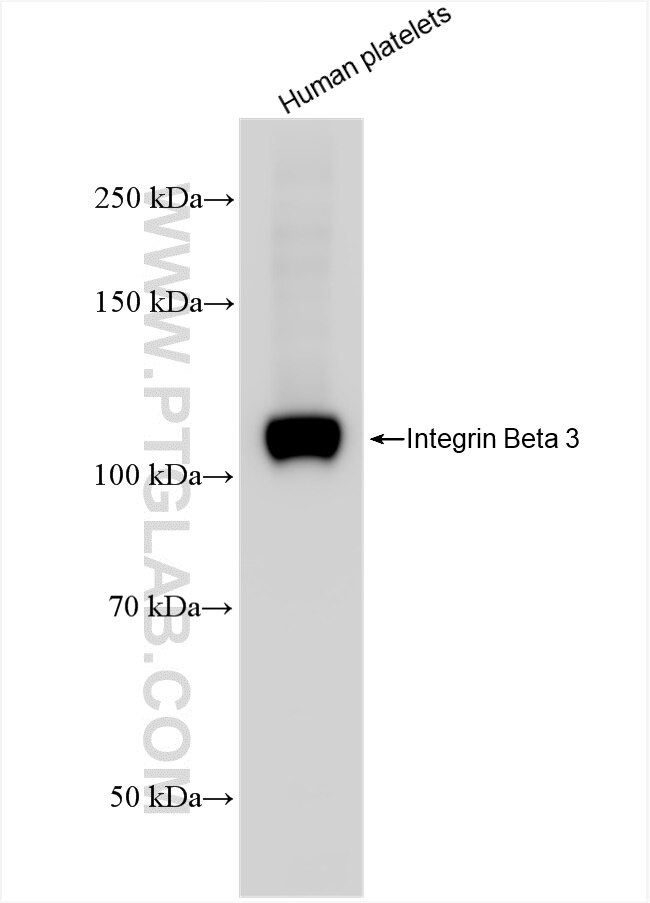 The Integrin beta 3 antibody from Proteintech is a rabbit recombinant antibody to a peptide of human Integrin beta 3. This antibody recognizes human antigen. The Integrin beta 3 antibody has been validated for the following applications: WB, ELISA analysis.