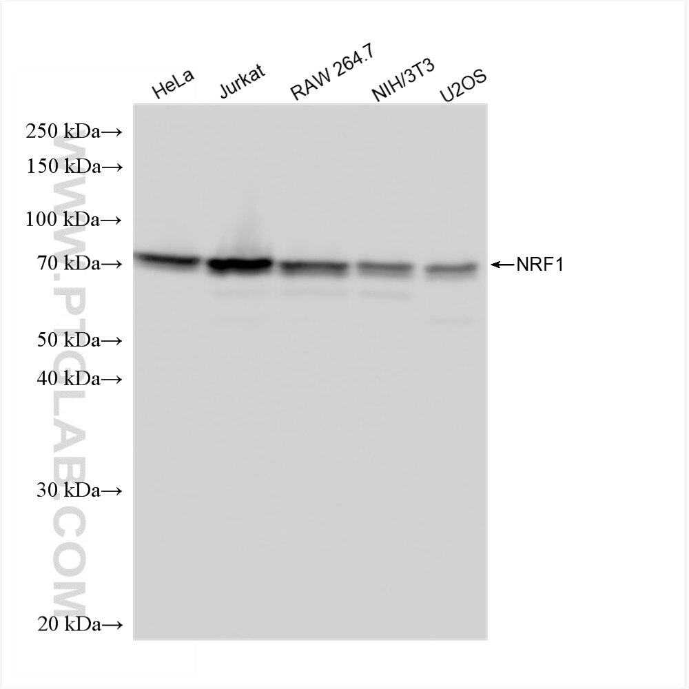 The NRF1/nuclear respiratory factor 1 antibody from Proteintech is a rabbit recombinant antibody to a recombinant protein of human NRF1/nuclear respiratory factor 1. This antibody recognizes human, mouse antigen. The NRF1/nuclear respiratory factor 1 antibody has been validated for the following applications: WB, IHC, IF/ICC, FC (Intra), ELISA analysis.