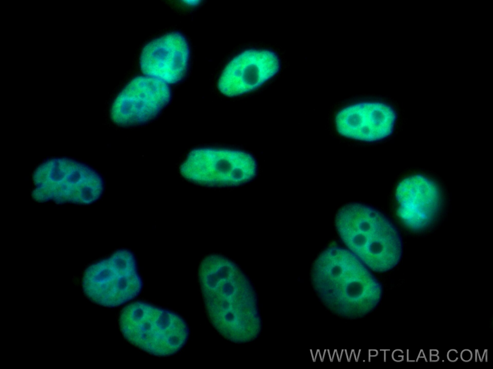 The HNRNPUL1 antibody from Proteintech is a rabbit polyclonal antibody to a recombinant protein of human HNRNPUL1. This antibody recognizes human, mouse antigen. The HNRNPUL1 antibody has been validated for the following applications: IF/ICC analysis. This antibody is coraliteR plus 488.