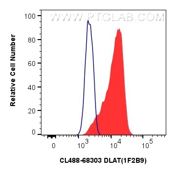 The DLAT antibody from Proteintech is a mouse monoclonal antibody to a recombinant protein of human DLAT. This antibody recognizes human, mouse, rat antigen. The DLAT antibody has been validated for the following applications: IF/ICC, FC (Intra) analysis. This antibody is coraliteR plus 488.