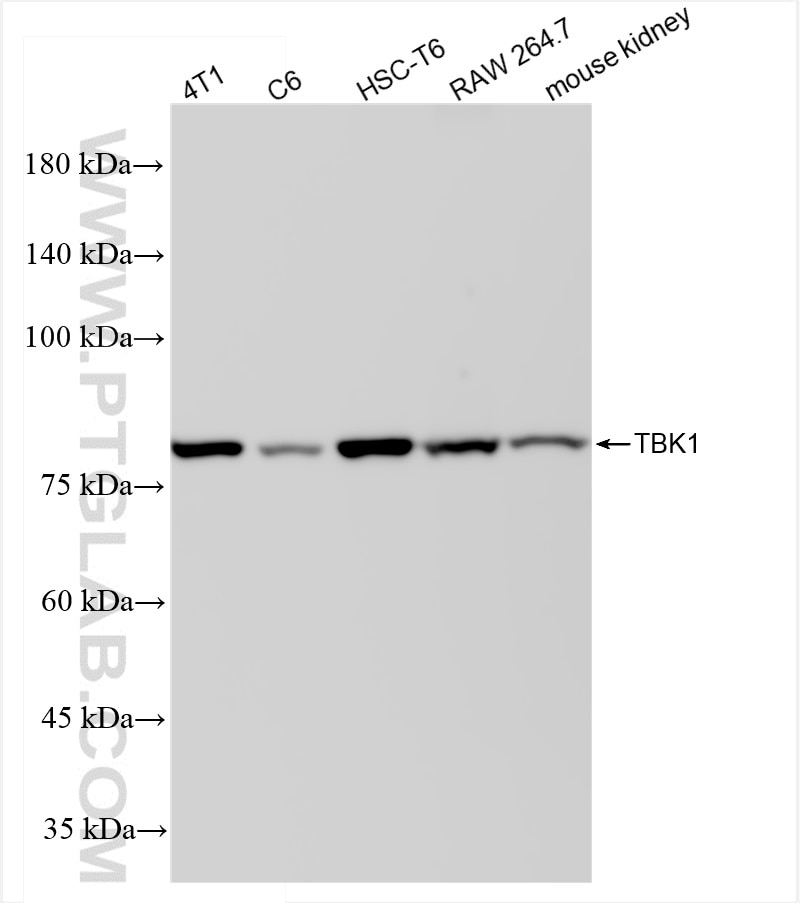 The TBK1 antibody from Proteintech is a rabbit recombinant antibody to a recombinant protein of human TBK1. This antibody recognizes human, mouse, rat antigen. The TBK1 antibody has been validated for the following applications: WB, ELISA analysis.